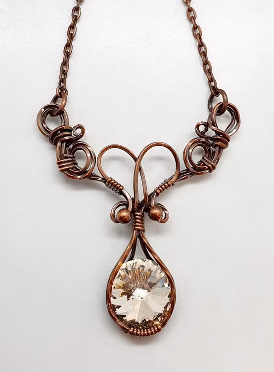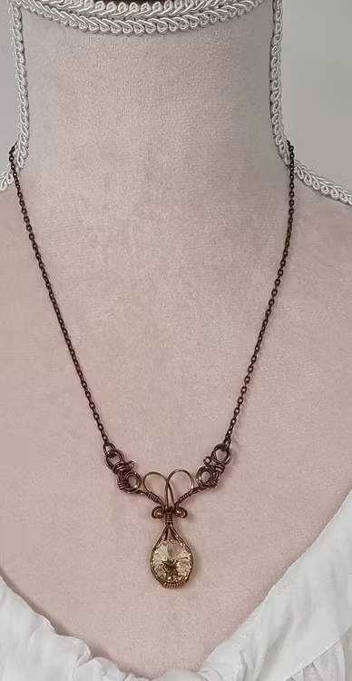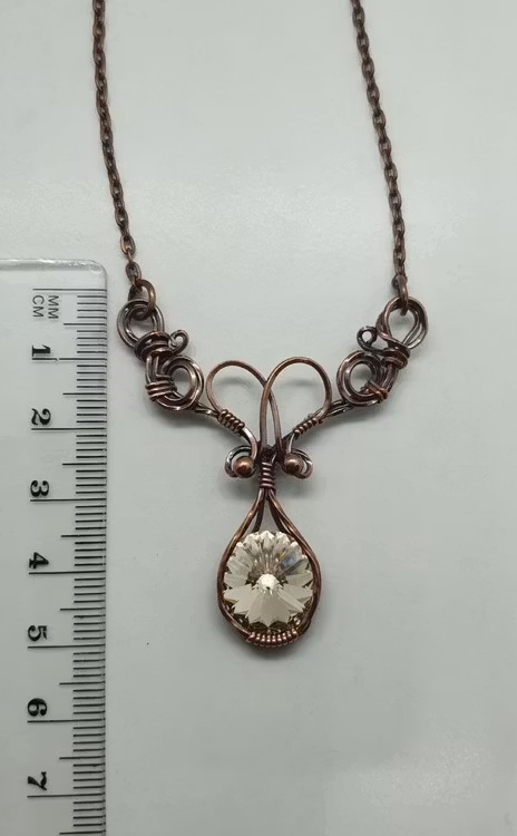 Underbart halsband i oxiderad koppar med en gnistrande Swarovski kristall.