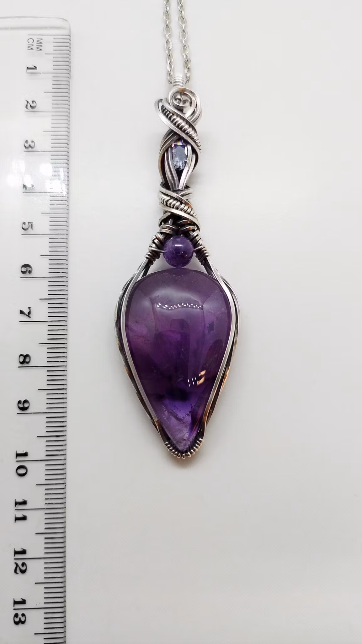 Material hänge: oxiderad äkta 925 sterlingsilvertråd, ametist, pärla av ametist, kubisk zirkonia