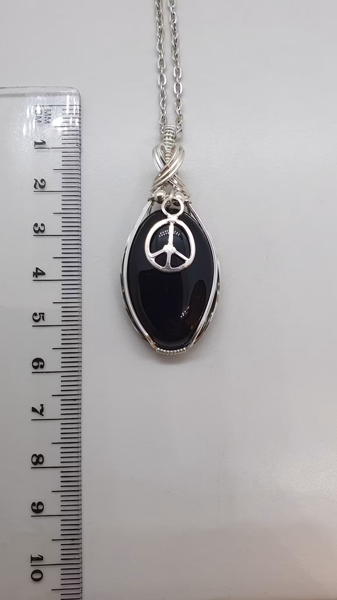 Material hänge: 925 sterlingsilvertråd, 925 silverkulor, svart agat, peaceberlock i 925 sterlingsilver