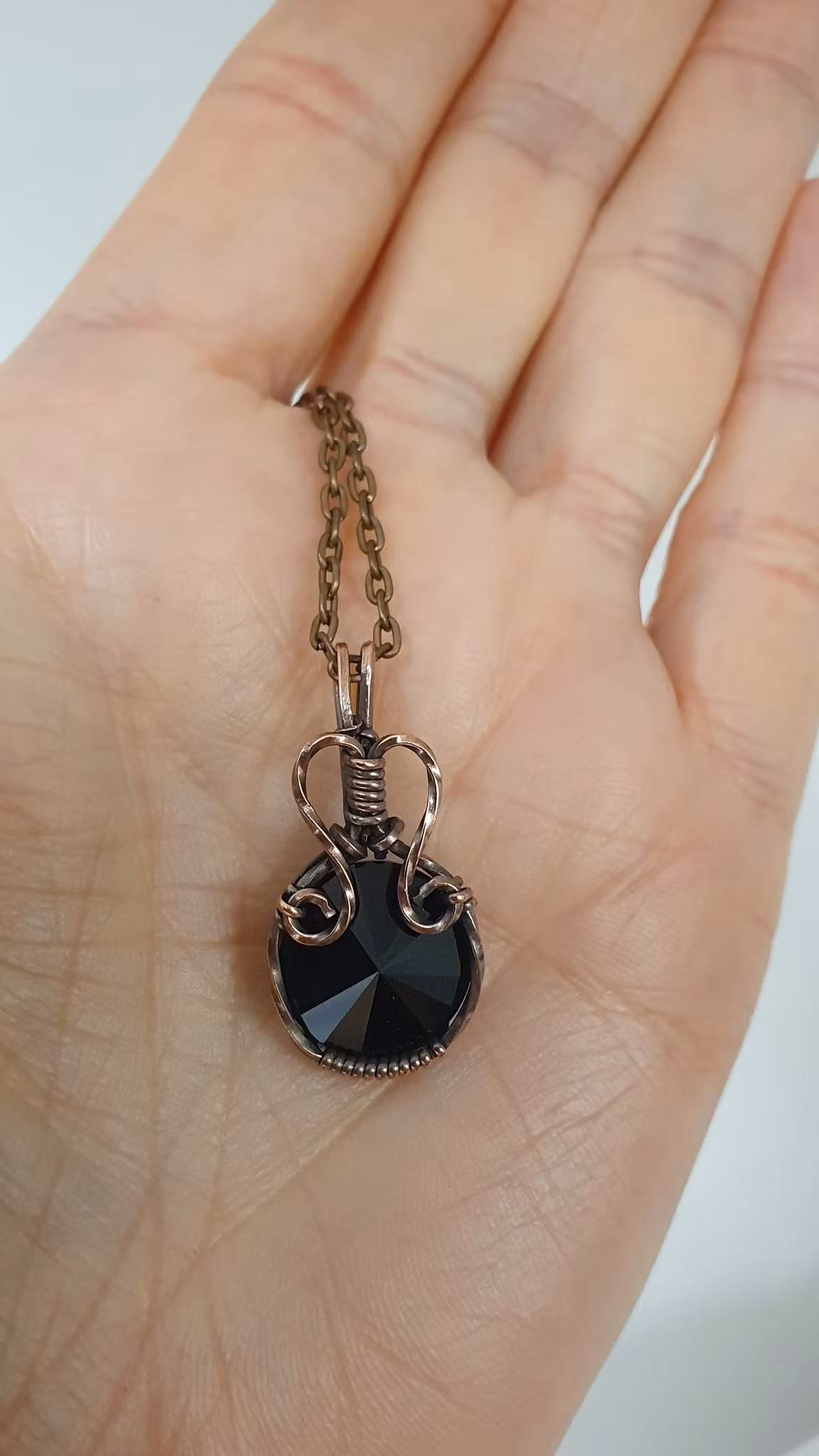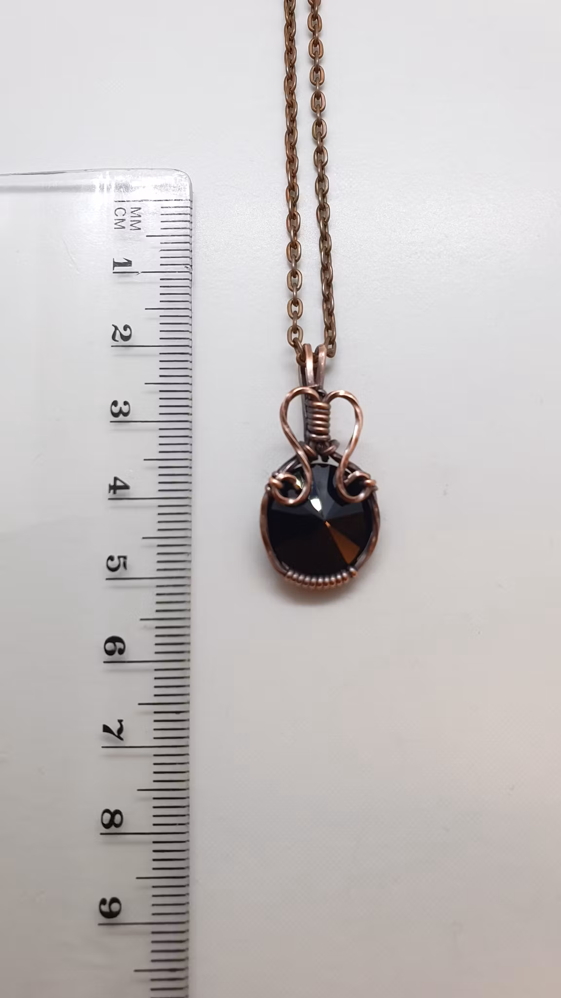 Material hänge: oxiderad ren koppartråd, Swarovski kristall Jet 14 mm